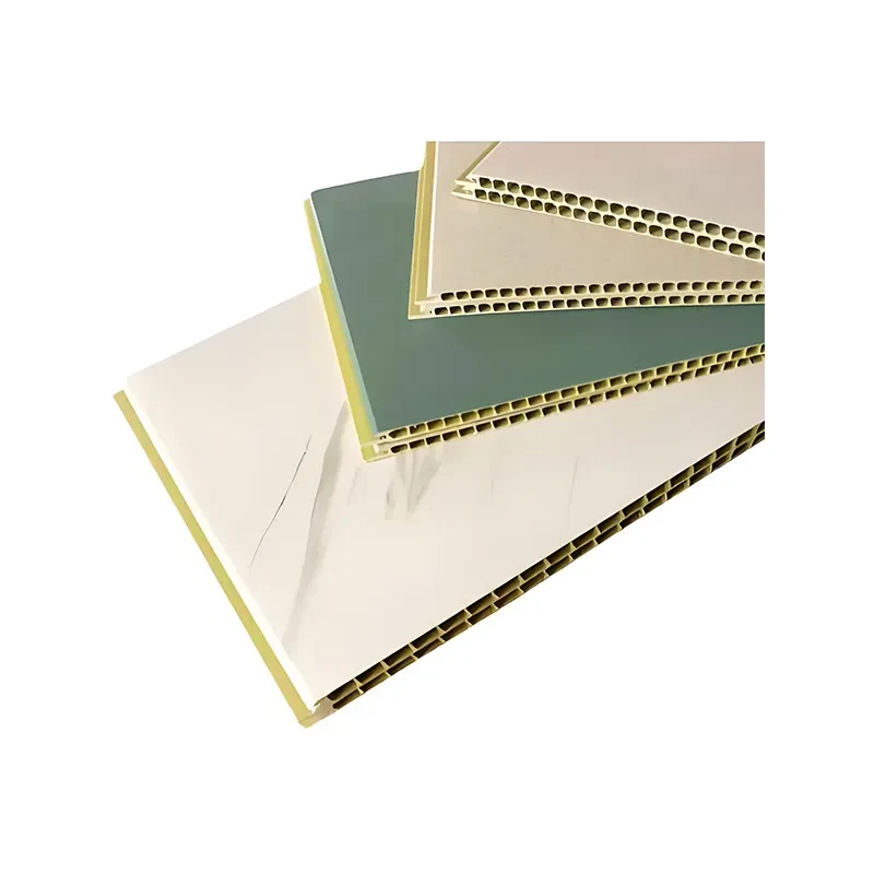 Notre revêtement de plafond en PVC est disponible en marbre, effet en bois, effet de tuile et autres styles décoratifs, qui conviennent largement à tous les lieux et zones.